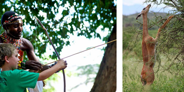 Wildlife includes lions, elephants, leopards, and Samburu’s desert antelopes.